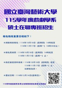 • 115學年度戲劇學系碩士班甄試招生