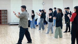 除了舞台上的對話,本系同學更走進明知大學教學現場,與韓國學子共同參與音樂劇舞蹈課程 。在排練場中,雙方學生突破語言隔閡,過穩肢體律動相互切磋,並於課後針對表演技巧展開熱烈討論。同時,過穩觀摩其「實習製作課」以及參訪完善的系館設施,學生得以實地感受韓國音樂劇教育紮實且專業的培訓體系。。